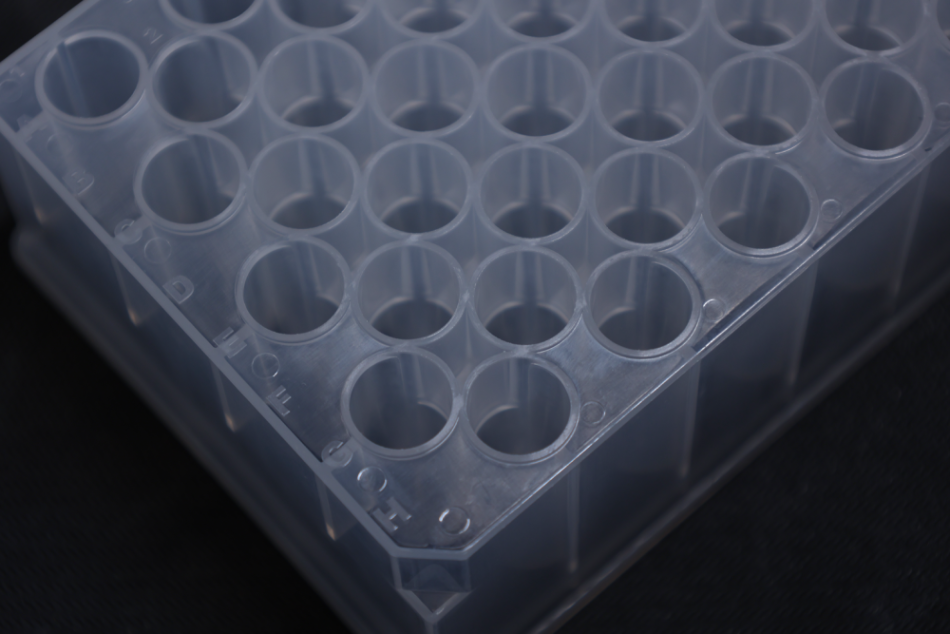 紅榮微再I(mǎi)ngenuitech?48孔深孔板采用醫(yī)療級(jí)聚丙烯(PP)為原料,于先進(jìn)的注塑成型造產(chǎn)線及自動(dòng)化生產(chǎn)線中生產(chǎn),產(chǎn)品質(zhì)量安全可靠,經(jīng)過(guò)無(wú)酶測(cè)試、無(wú)菌測(cè)試和核酸污染測(cè)試,驗(yàn)證無(wú)菌、無(wú)熱原且不含RNase/DNase;提供三款具有不同的單孔容量范圍(3.5、4.6ml),孔型(圓孔、方孔)及孔排列方式(規(guī)格、不規(guī)則)的產(chǎn)品,以滿足不同應(yīng)用需求,主要用于樣品存儲(chǔ)、樣品處理和進(jìn)樣操作等。